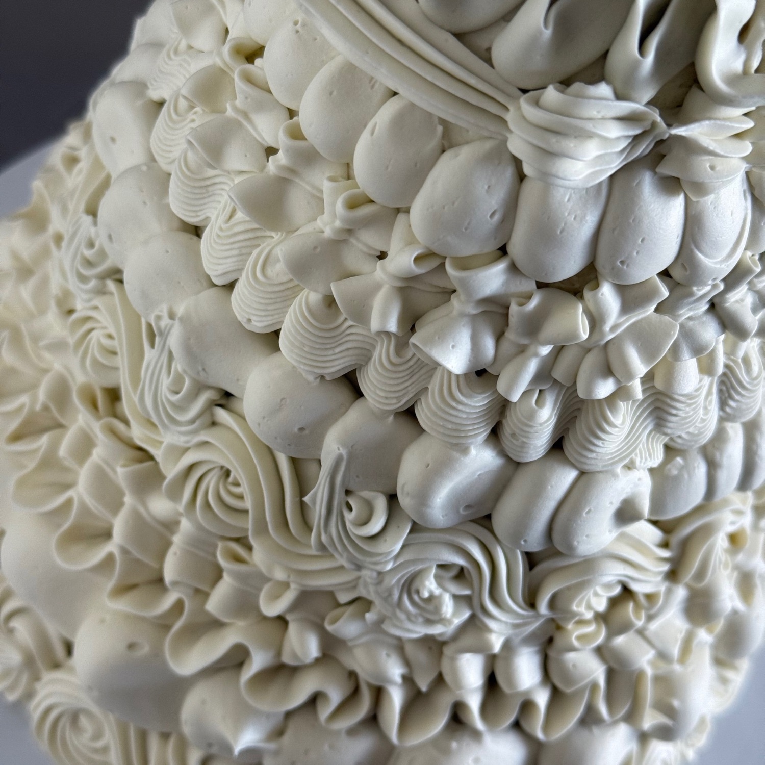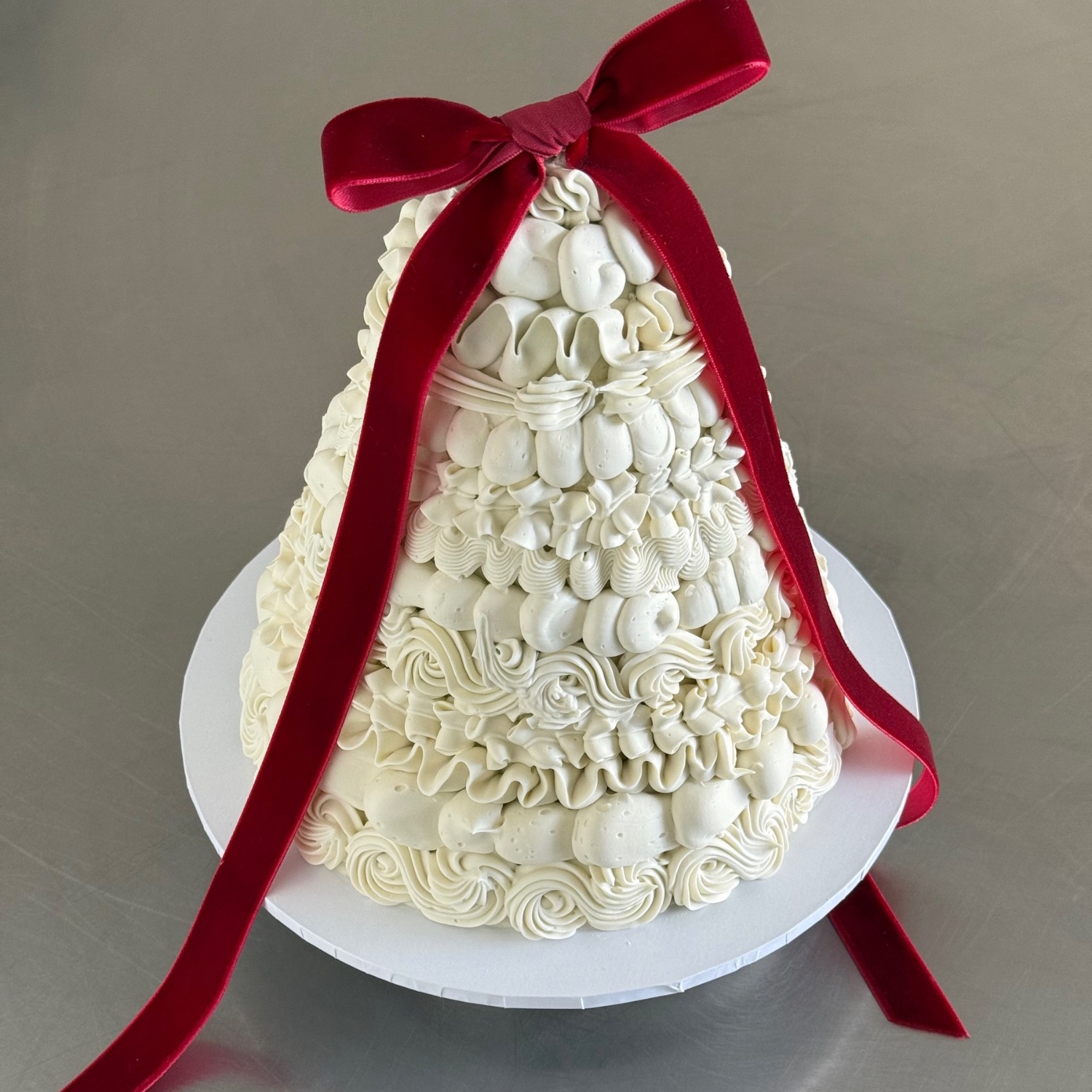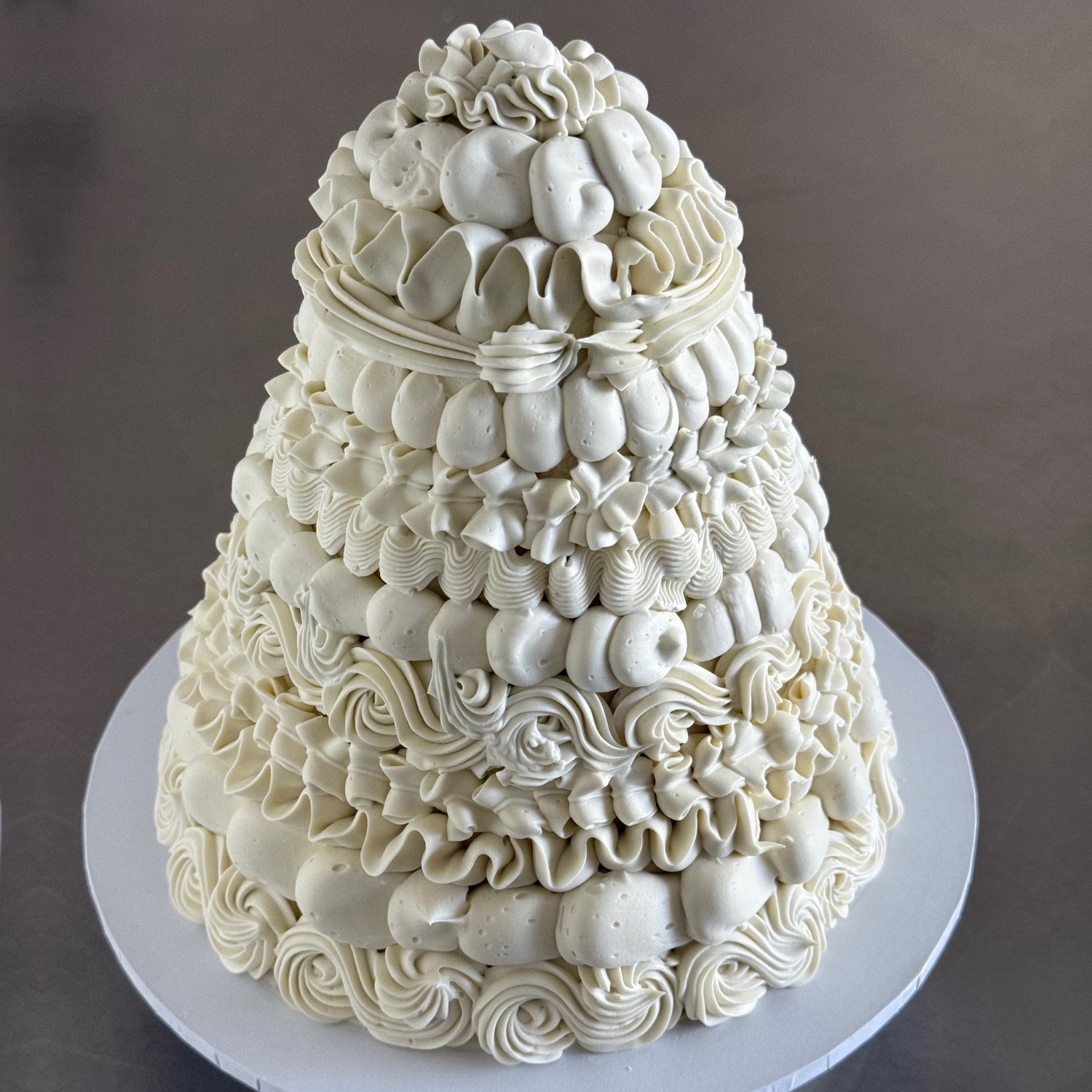Cone-shaped cake with playful textures and artistic style, while still polished and editorial.