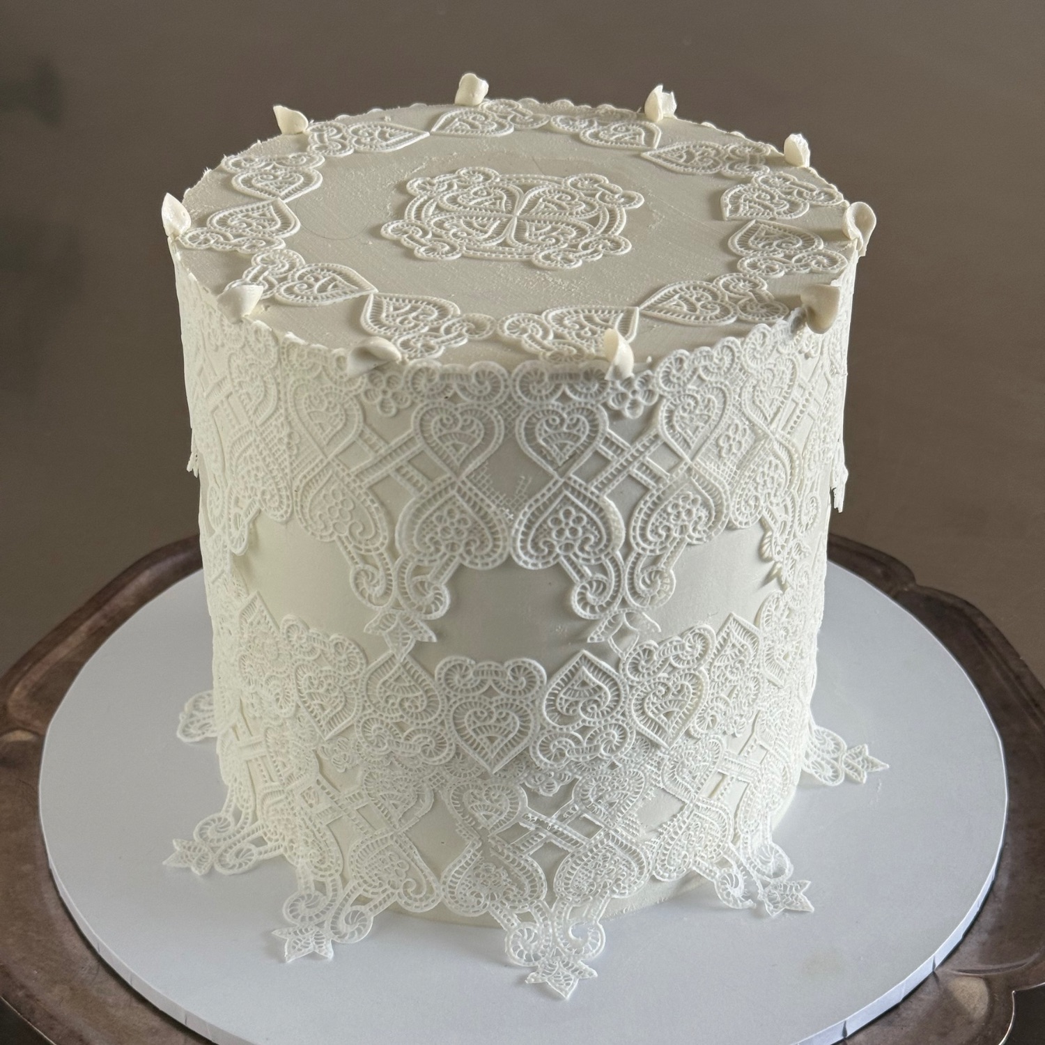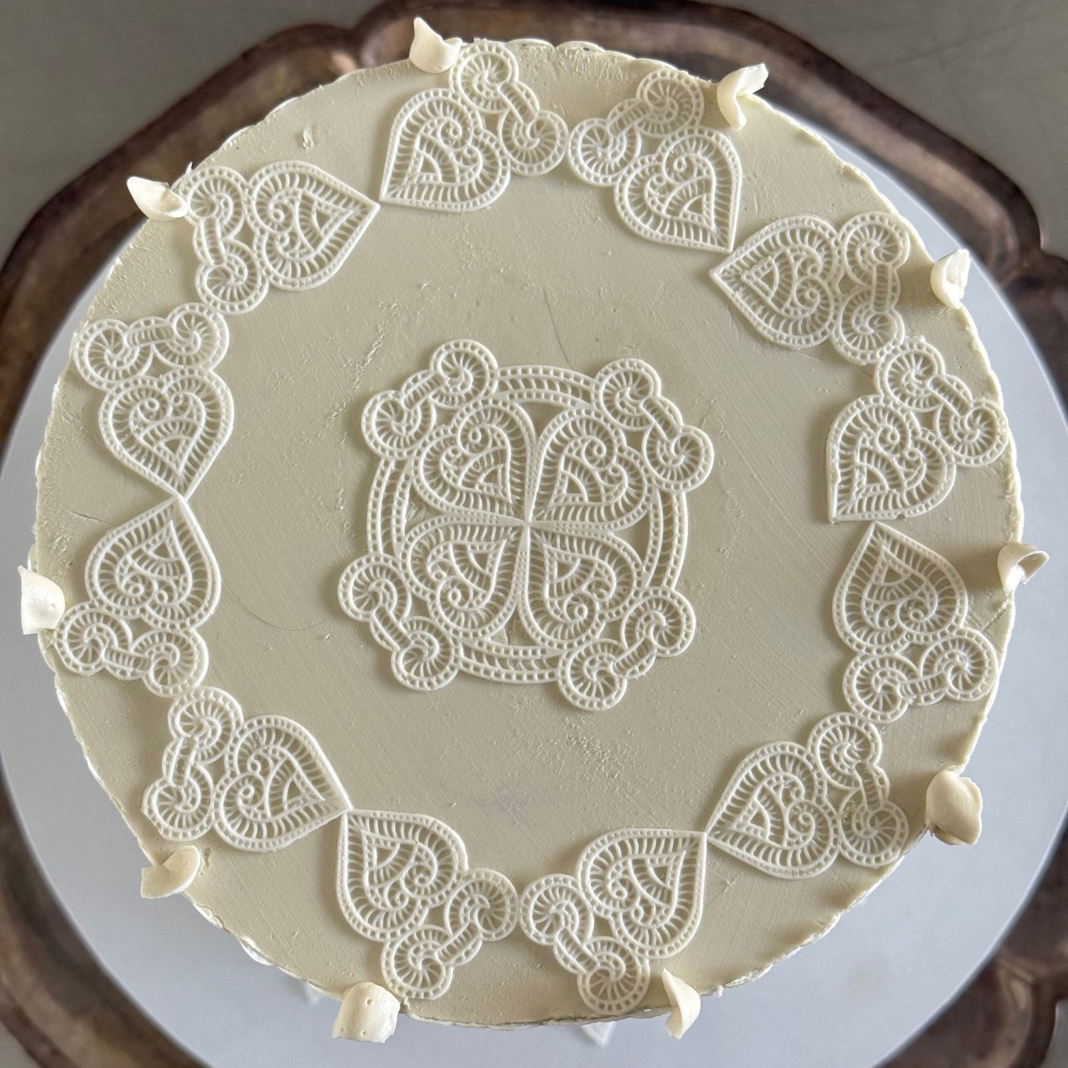 The Boho Luxe vibe is having a moment again, and this design captures effortless romance with its delicate edible lace details.